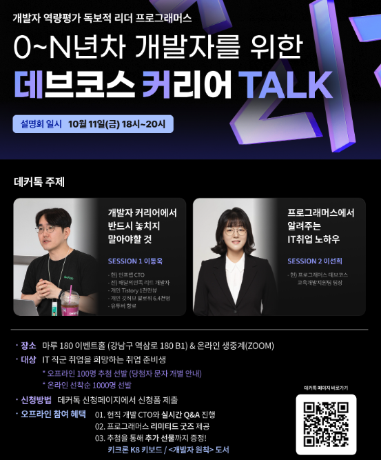 2024년 10월 11일 프로그래머스에서 주최한 0~N년차 개발자를 위한 데브코스 커리어 TALK에 다녀왔습니다!