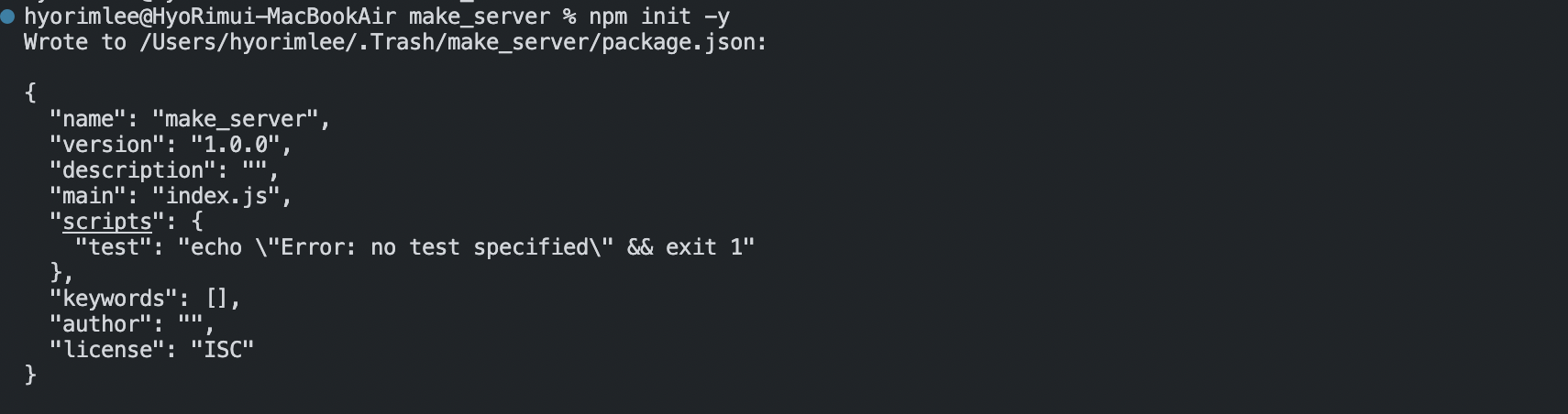 pakage.json이 생성됩니다.