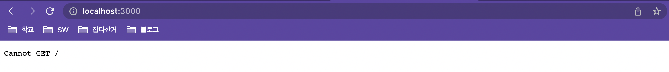 chrome에서 localhost:3000에 접속한다면 서버가 올바르게 생성된 것을 알 수 있습니다. cannot GET 은 liste에 답변이 오지 않았다는 의미입니다.