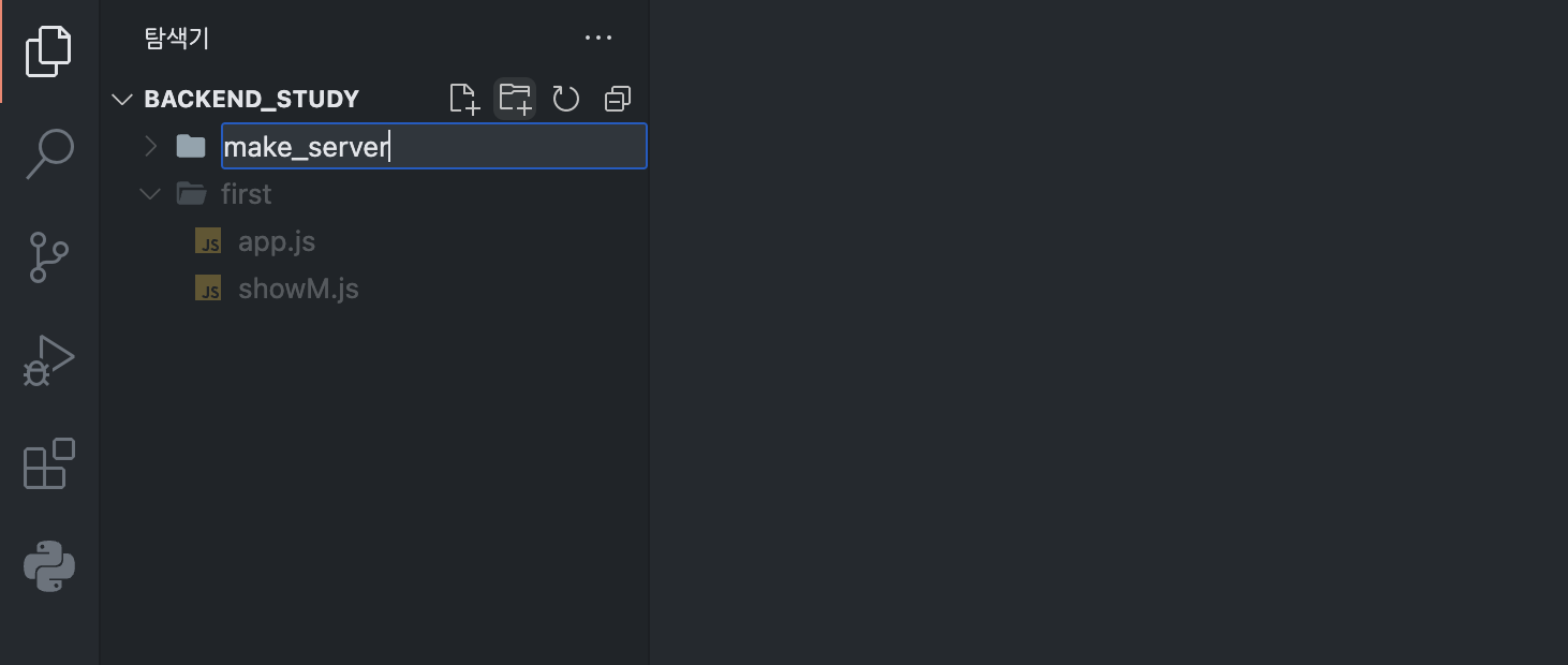 먼저, 웹 서버를 구축할 폴더를 생성합니다. 저는 폴더 명을 make_server로 설정하겠습니다.