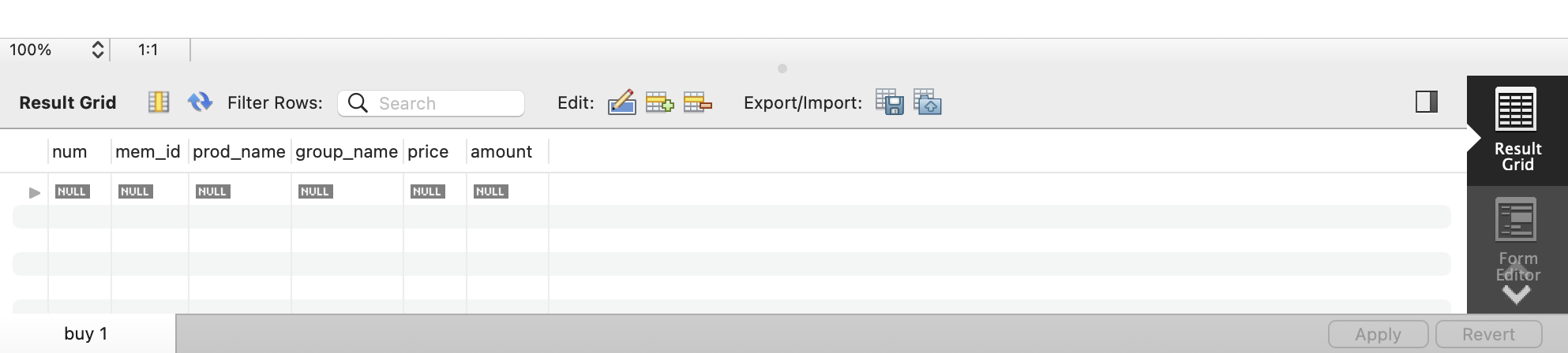 SELECT로 확인해보니 buy 테이블이 잘 만들어진 것을 확인할 수 있습니다.