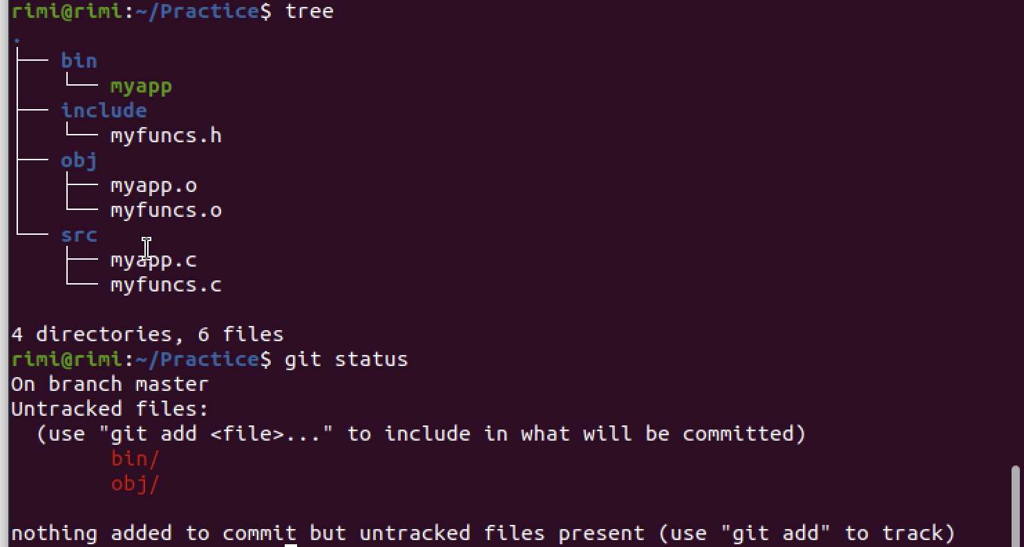 - bin 폴더의 실행 파일인 myapp과 obj폴더의 object 파일은 깃에 추가될 필요가 없기 때문이다.
