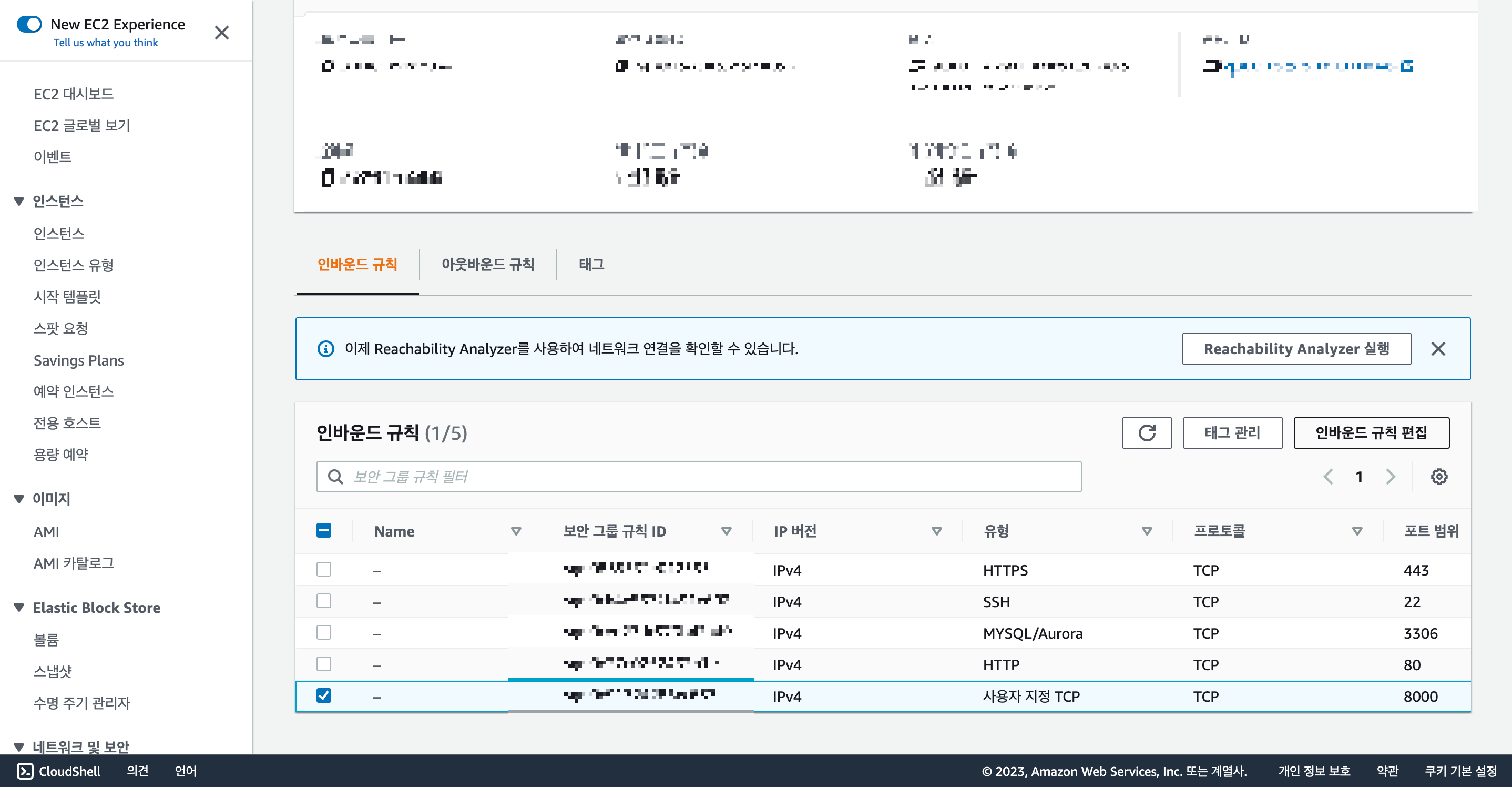 사람마다 필요한 인바운드 규칙은 모두 달라서 각자 알아보고 원하는걸 추가하시면 됩니다. 저는 일단 다음과 같이 추가했습니다.