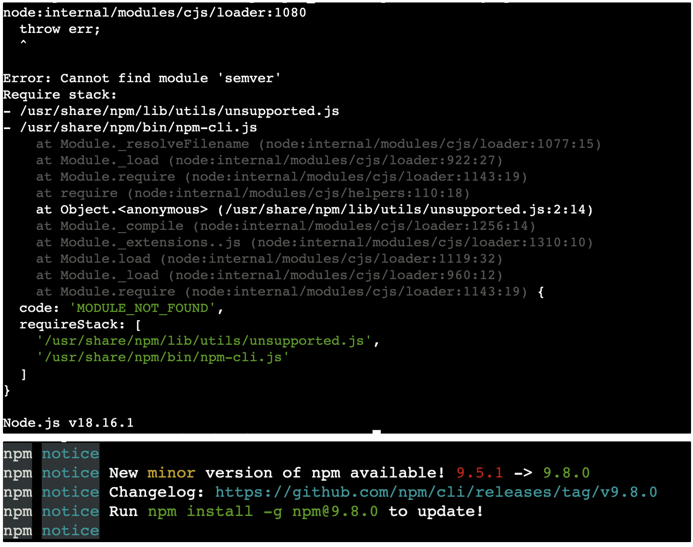 - Error: Cannot find module 'semver'