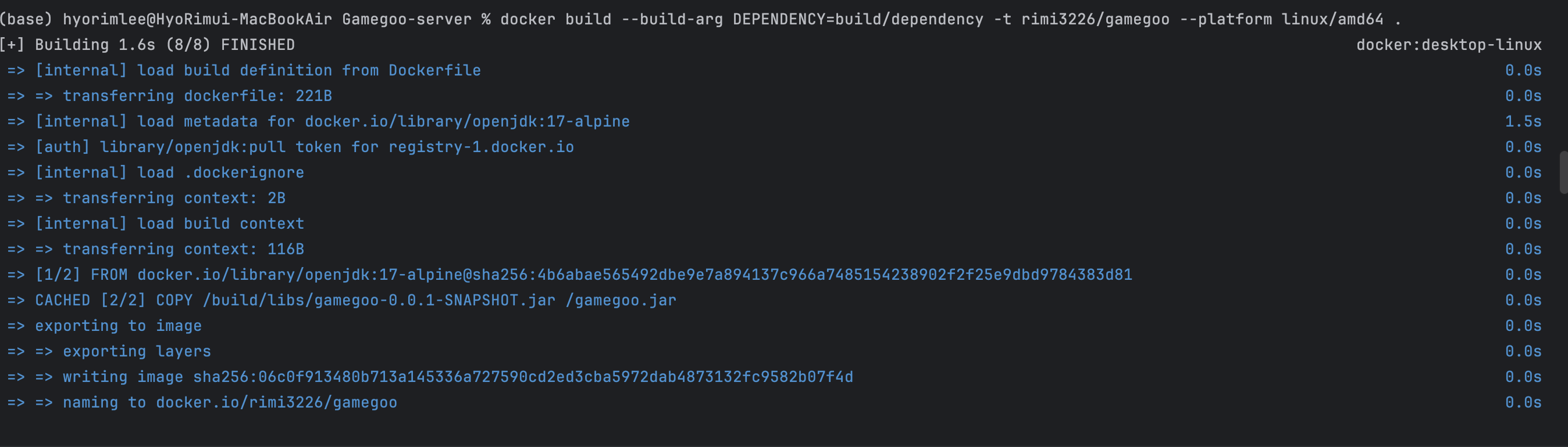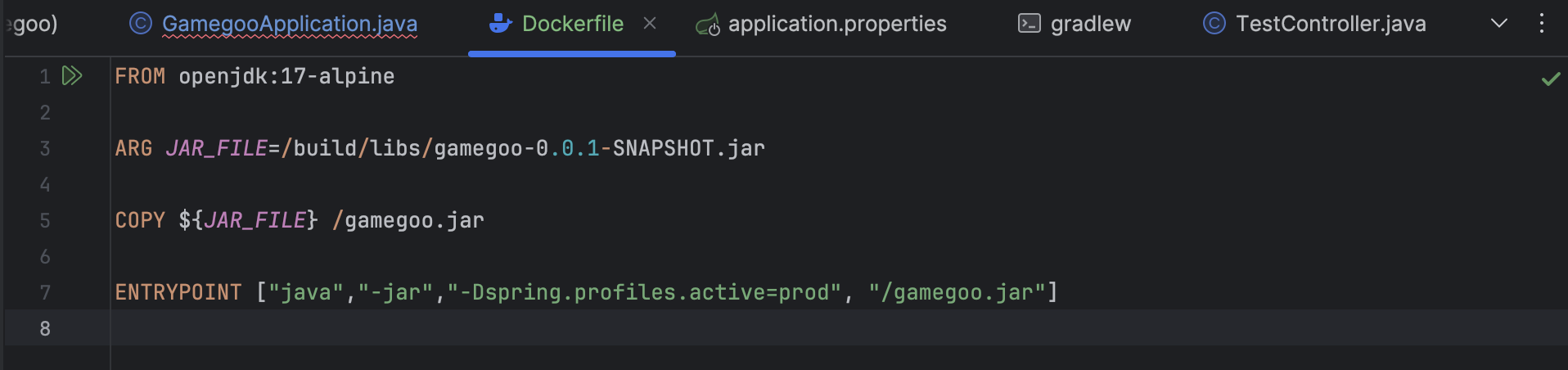 2. ./build/libs 폴더 안에 있는 gamegoo-0.0.1-SNAPSHOT.jar 파일 사용해서 이미지 빌드