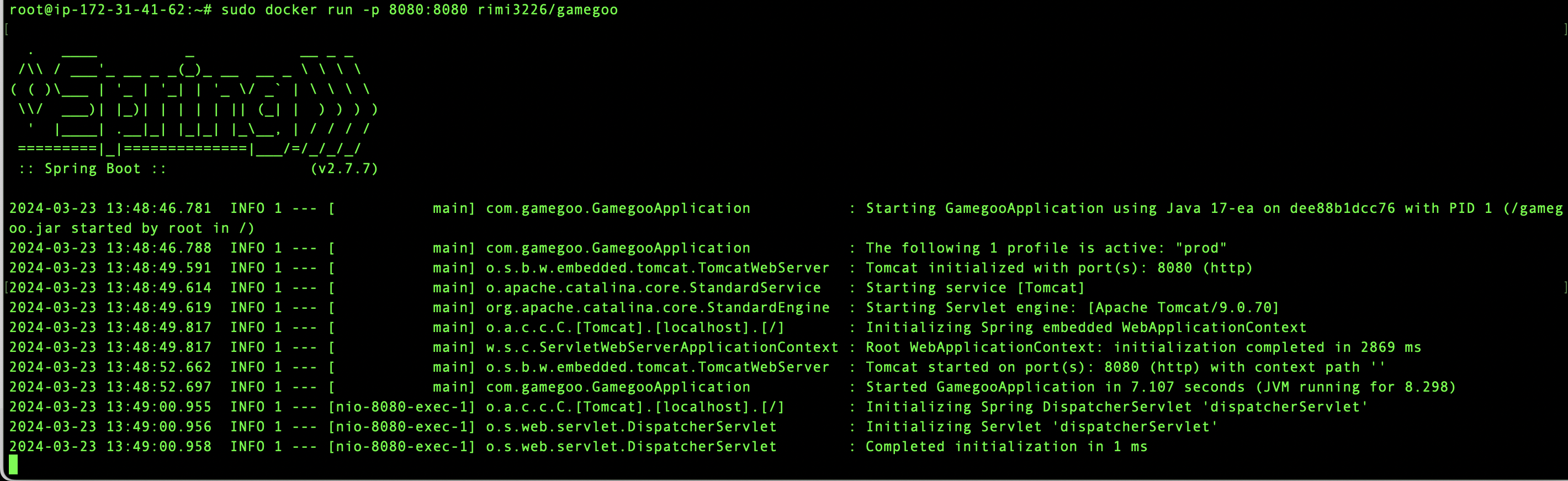 sudo docker run -p 8080:8080 [본인 Docker Hub Username]/[Repository 이름]
