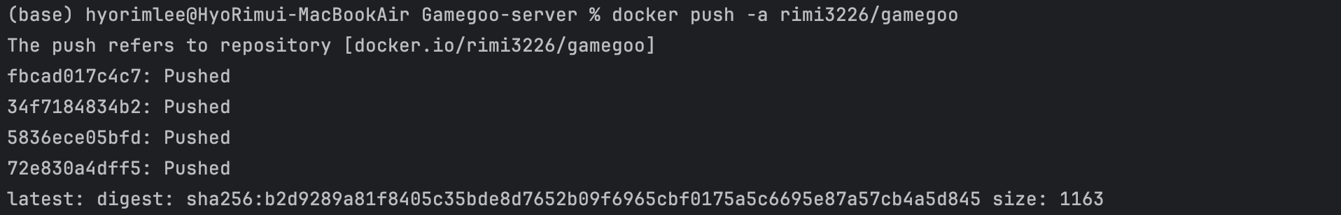 sudo docker push -a [본인 Docker Hub Username]/[Repository 이름]